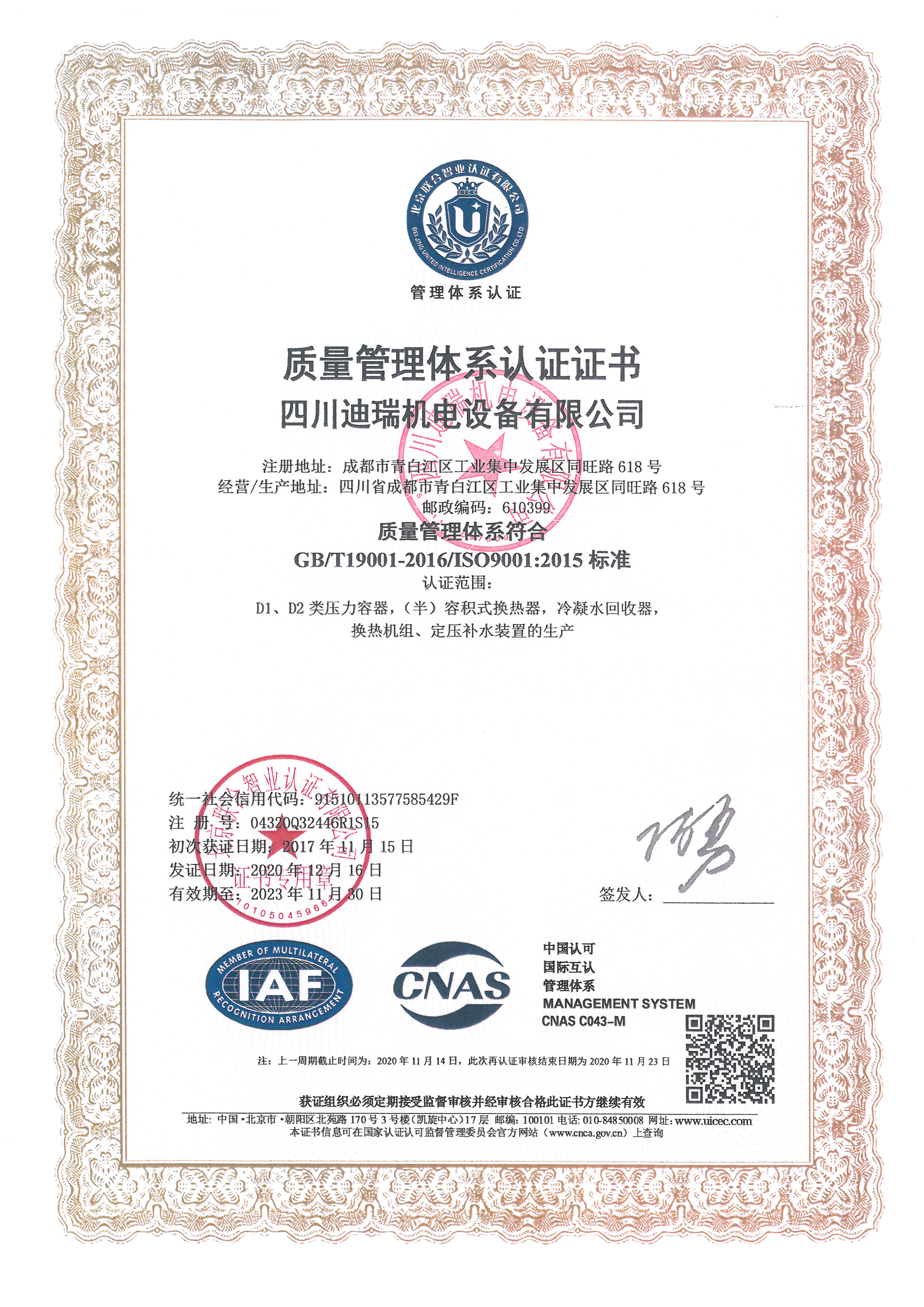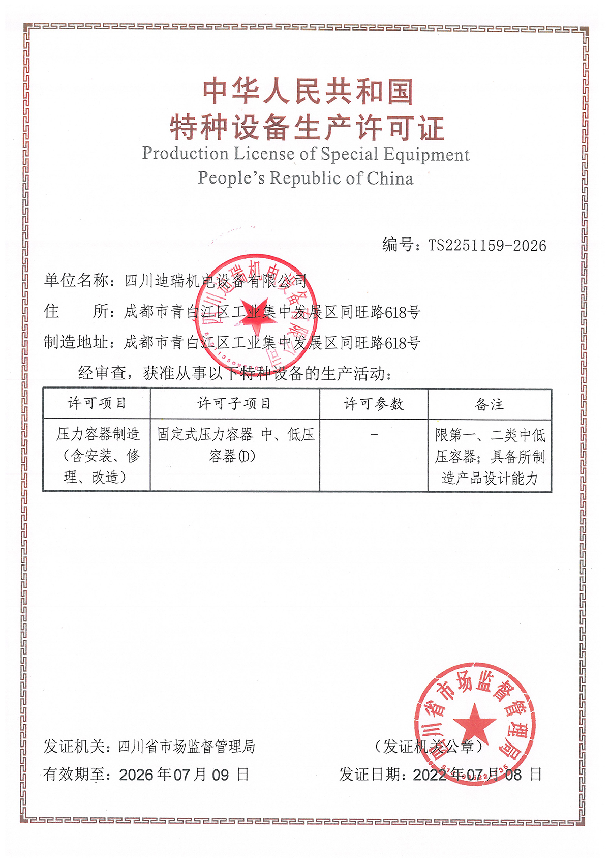 企業(yè)奉行“用戶至上、優(yōu)質(zhì)服務(wù)、持續(xù)改進(jìn)”的宗旨,不斷改進(jìn)產(chǎn)品結(jié)構(gòu),提升產(chǎn)品性能,并與西安交通大學(xué)能源與動(dòng)力工程學(xué)院建立產(chǎn)學(xué)研合作,取得8項(xiàng)實(shí)用新型專利,正在申報(bào)一項(xiàng)發(fā)明專利。企業(yè)通過(guò)D1、D2類壓力容器制造許可認(rèn)證和ISO9001質(zhì)量管理體系認(rèn)證,被評(píng)為成都市擬上規(guī)企業(yè)、成都市專特新精企業(yè)和大中華區(qū)酒店工程師協(xié)會(huì)最佳合作單位。